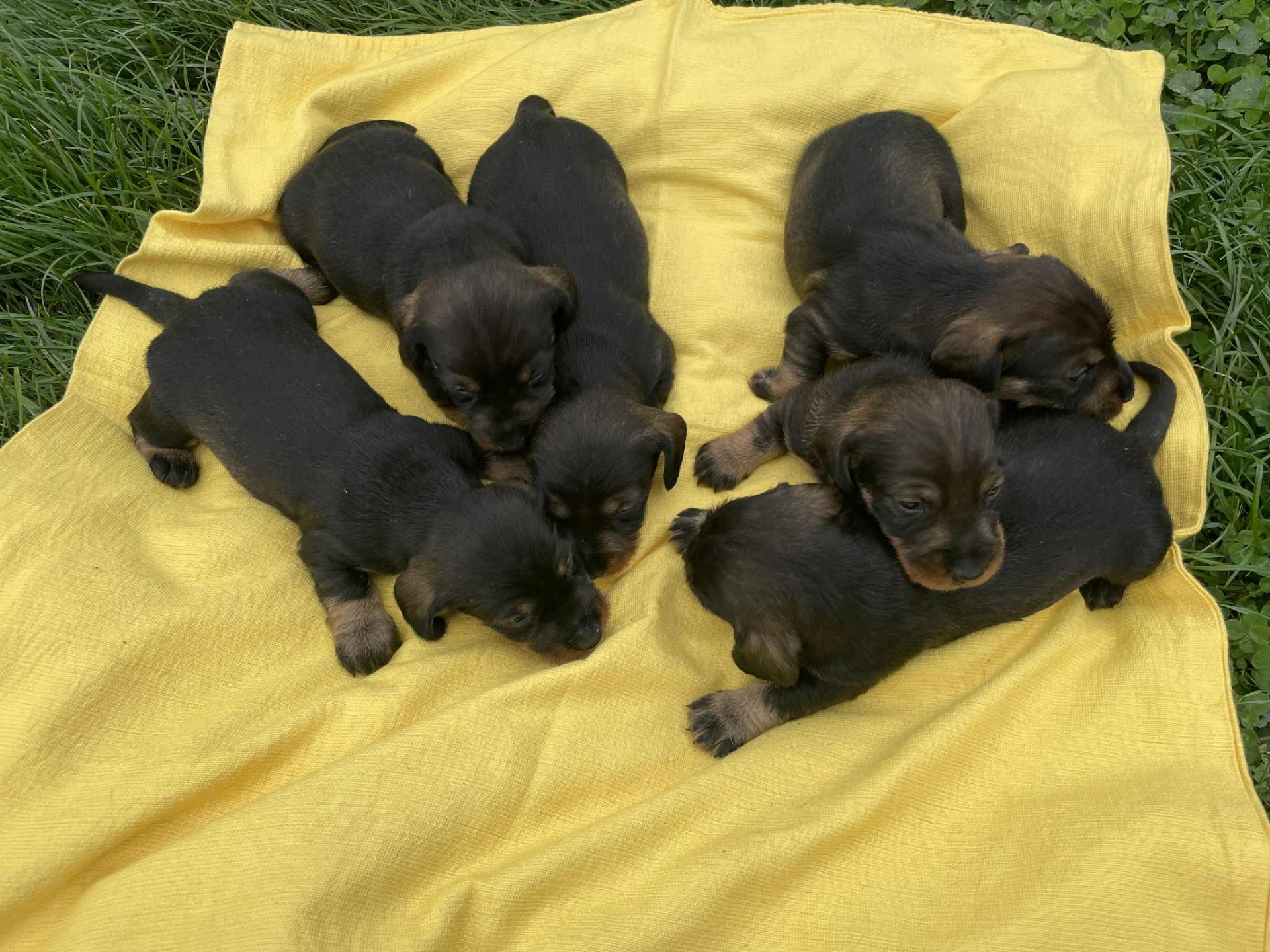 Nabízím štěňata jezevčíka drsnosrstého standard, k prodeji. Volní pejsci i fenky. Vrh B ze zahraničního krytí. Štěňata ponesou jméno CHS ze Zlámanské pohody. K odběru již přibližně v polovině listopadu. Otec: Caro spod Jasovskej skaly Matka: Kora z Pernštejnského podhradí